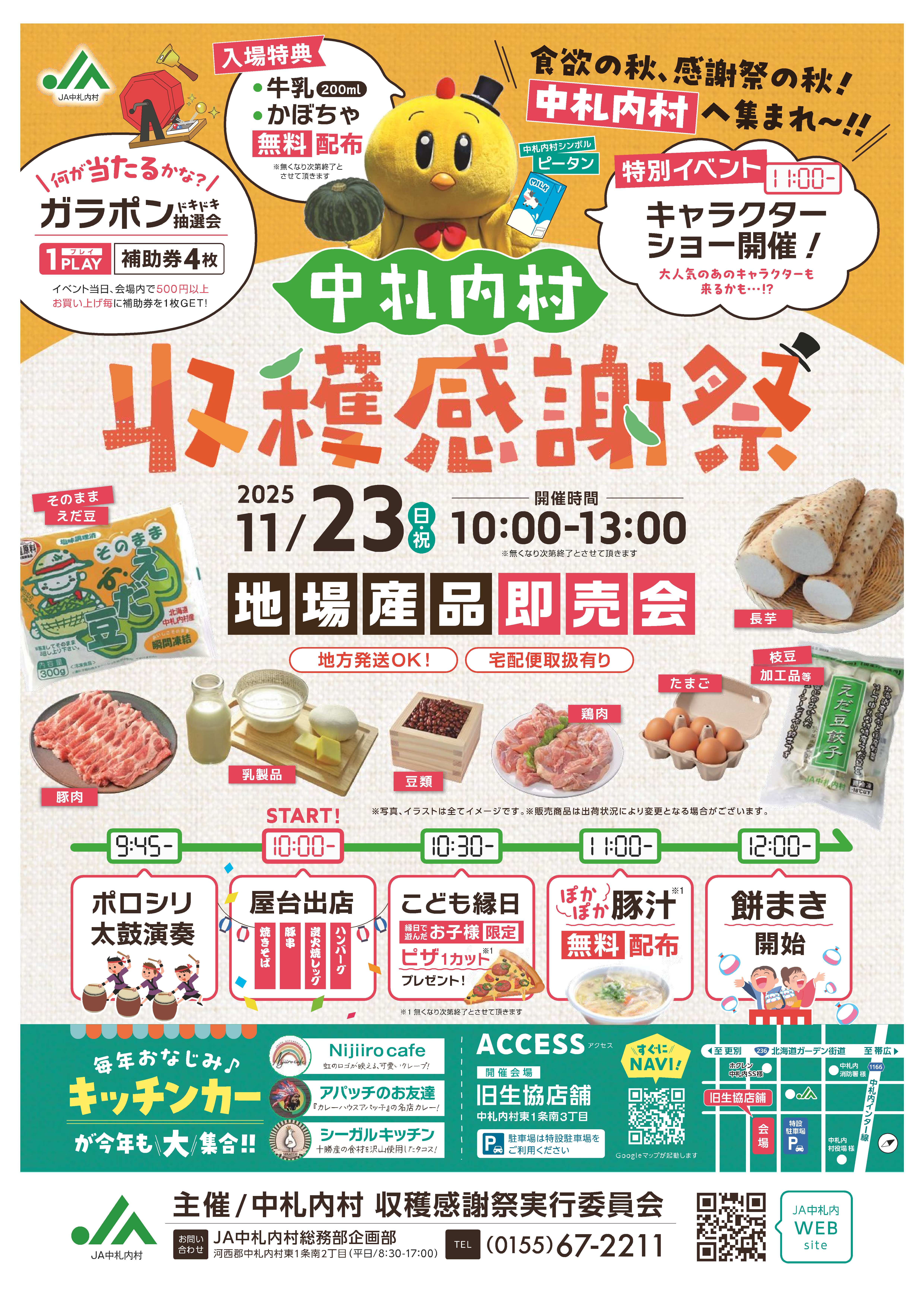 今年も11月23日(日・祝)に第42回 中札内村収穫感謝祭を開催します!